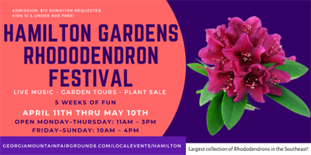 Spend a day in the most beautiful part of North Georgia - Hiawassee and the stunning Hamilton Gardens. This magical botanical garden is filled with native wildflowers like trilliums, shooting stars, and trout lilies, and more than 1,500 rhododendrons and native azaleas making it the largest collection in the Southeast!